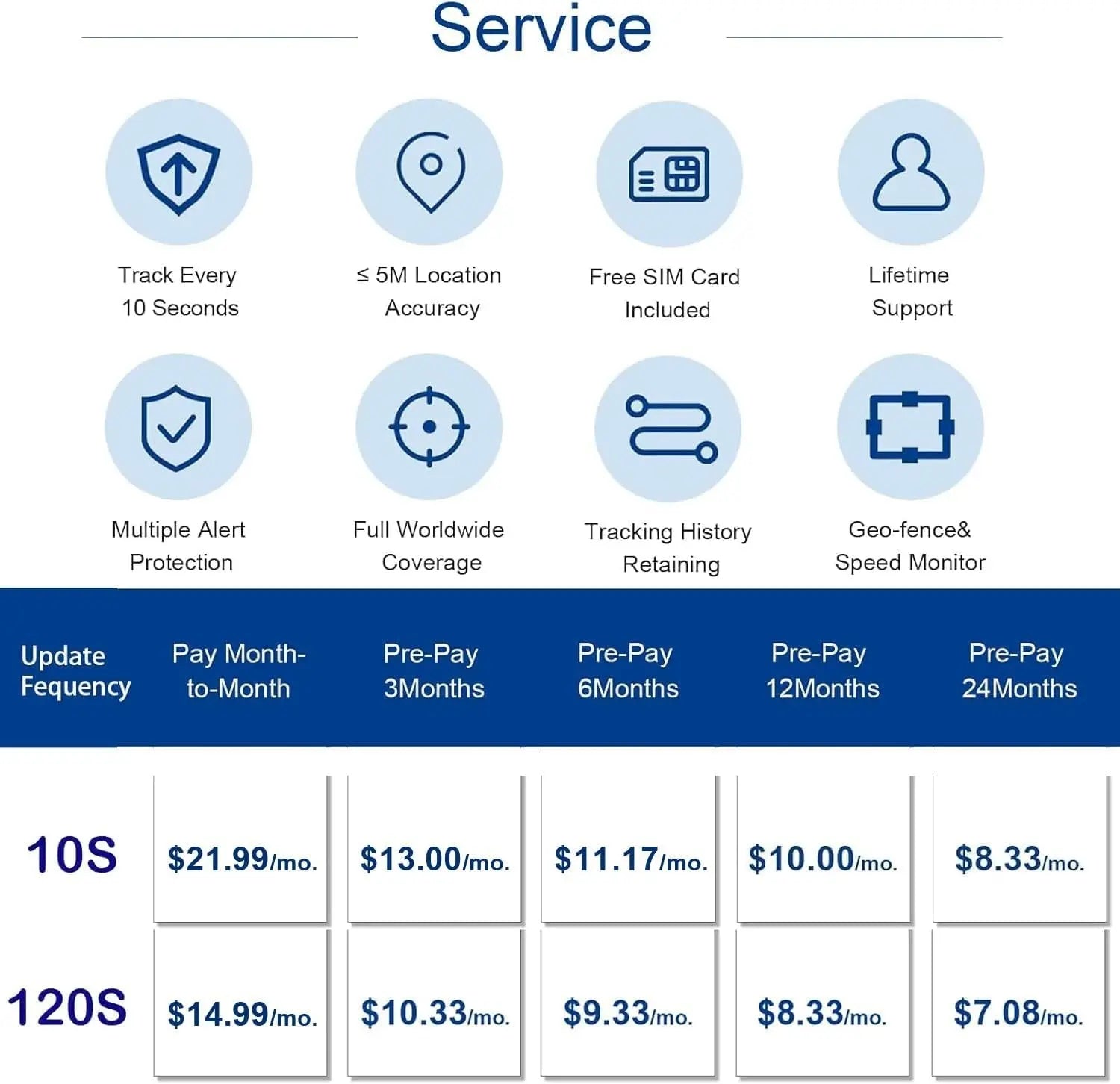 【No hidden charges】 - International SIM included, cannot be removed (the decive can only be used with this SIM card). A monthly fee of $14.99 h is required or as low as $7.08/month for long term prepaid plans(Paid automatically, all features included - Cancel anytime). Search "Tracker One" on Google Play or APP Store to download the APP.